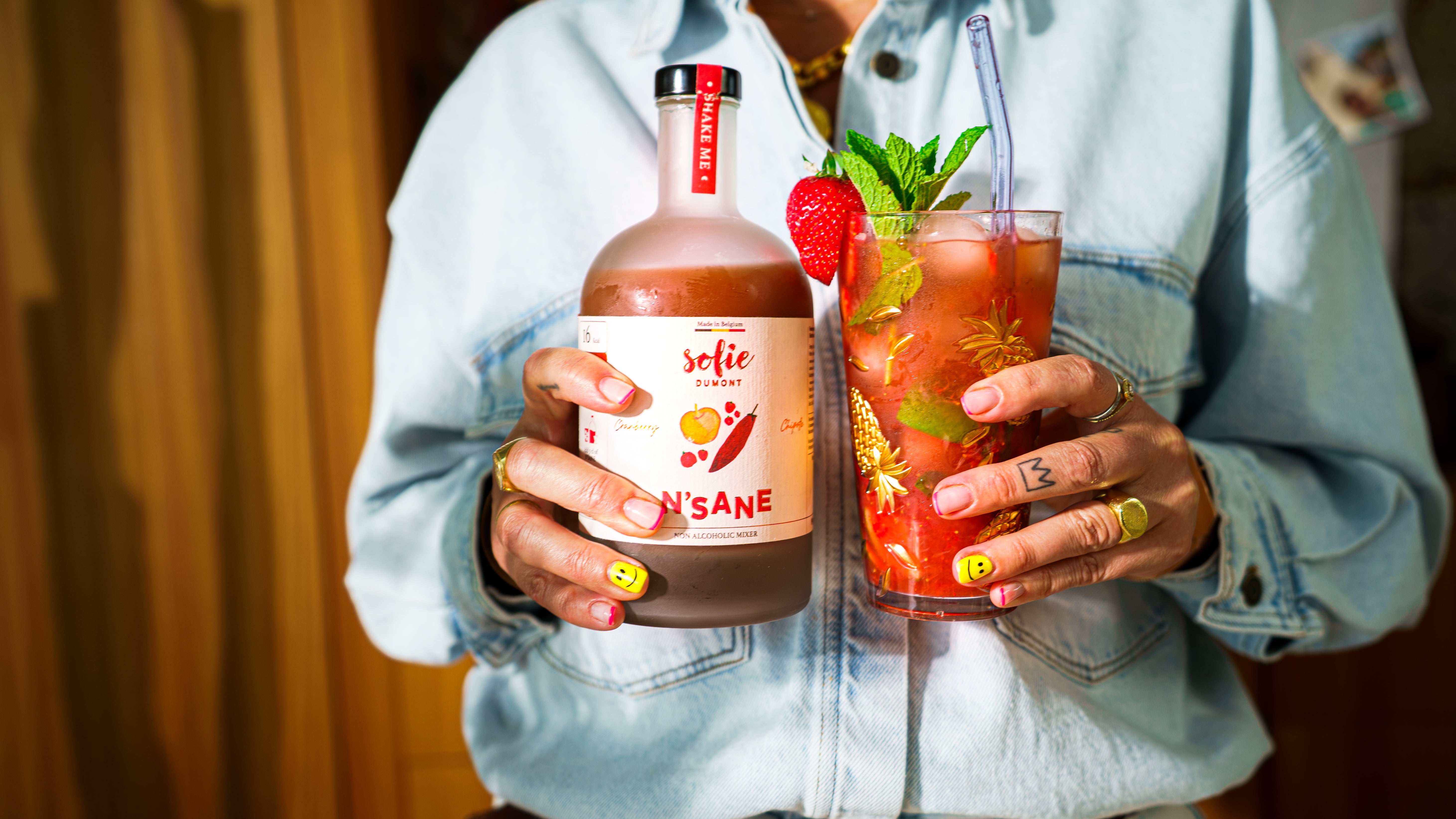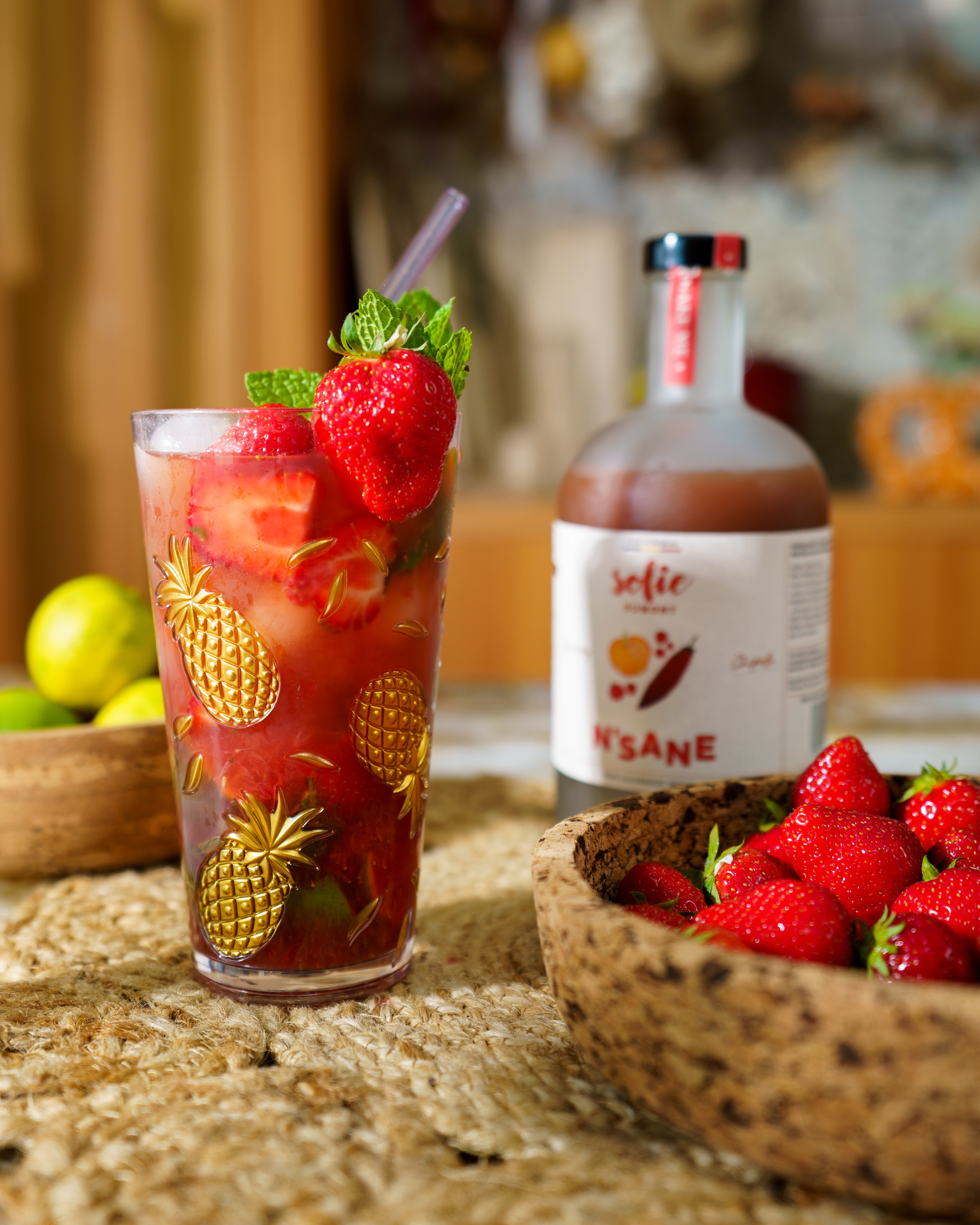 Oh les gars, un mocktail estival et frais ! Je suis super fan – tant qu'il n'est pas trop sucré, bien sûr. Le mojito est le cocktail le plus populaire, et j'aime lui donner une touche estivale avec des fraises et une petite note de fumée grâce à mon Smoky Cranberry Chipotle. Parfait pour ceux qui ont envie de quelque chose de festif sans alcool. Santé !