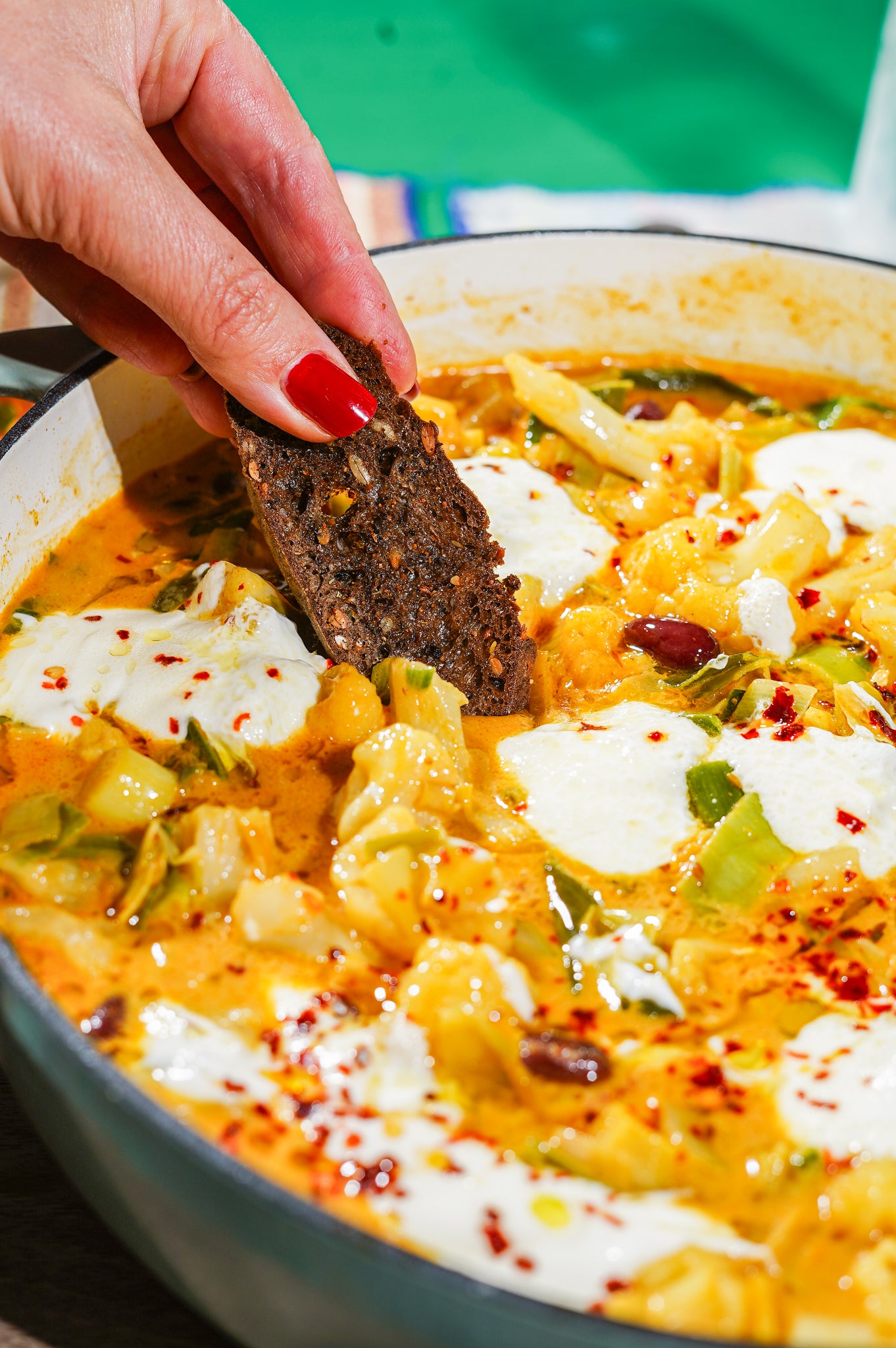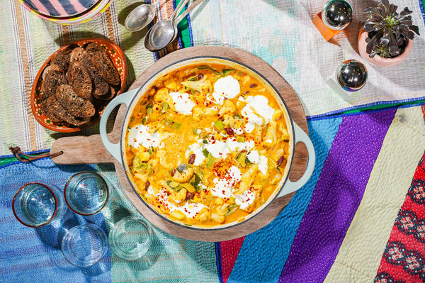 Dahl de chou-fleur avec du pain grillé