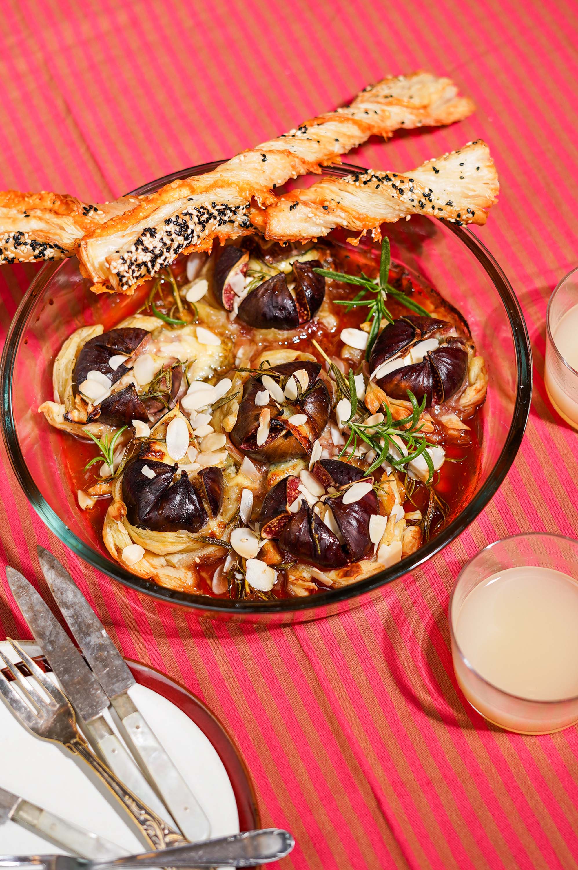 Coupez les figues en deux sans les séparer complètement, puis écartez-les légèrement.