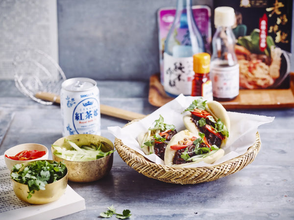 Ouvrez légèrement les buns chauds, remplissez-les avec le ragoût, garnissez de lanières de concombre, de coriandre fraîche et de rondelles de chili.