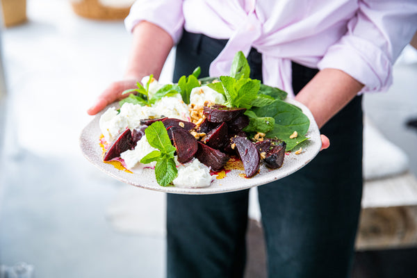 Betterave rouge grillée avec burrata et épinards