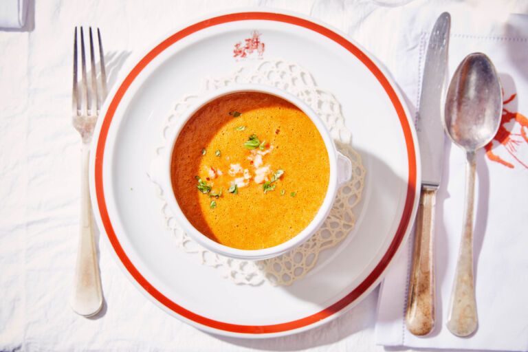 Goûtez et assaisonnez si nécessaire. Si vous souhaitez rendre la bisque crémeuse, ajoutez un filet de crème dans les assiettes, pas dans la grande casserole, pour éviter que la bisque ne tourne rapidement.