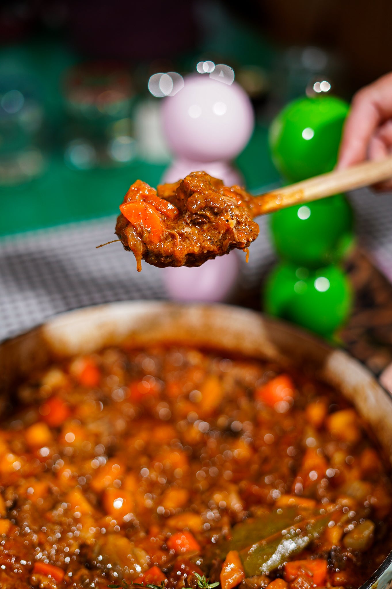 Cueillette de la viande : Laissez le ragoût devenir tiède, retirez-le des os et remettez-le dans la sauce.