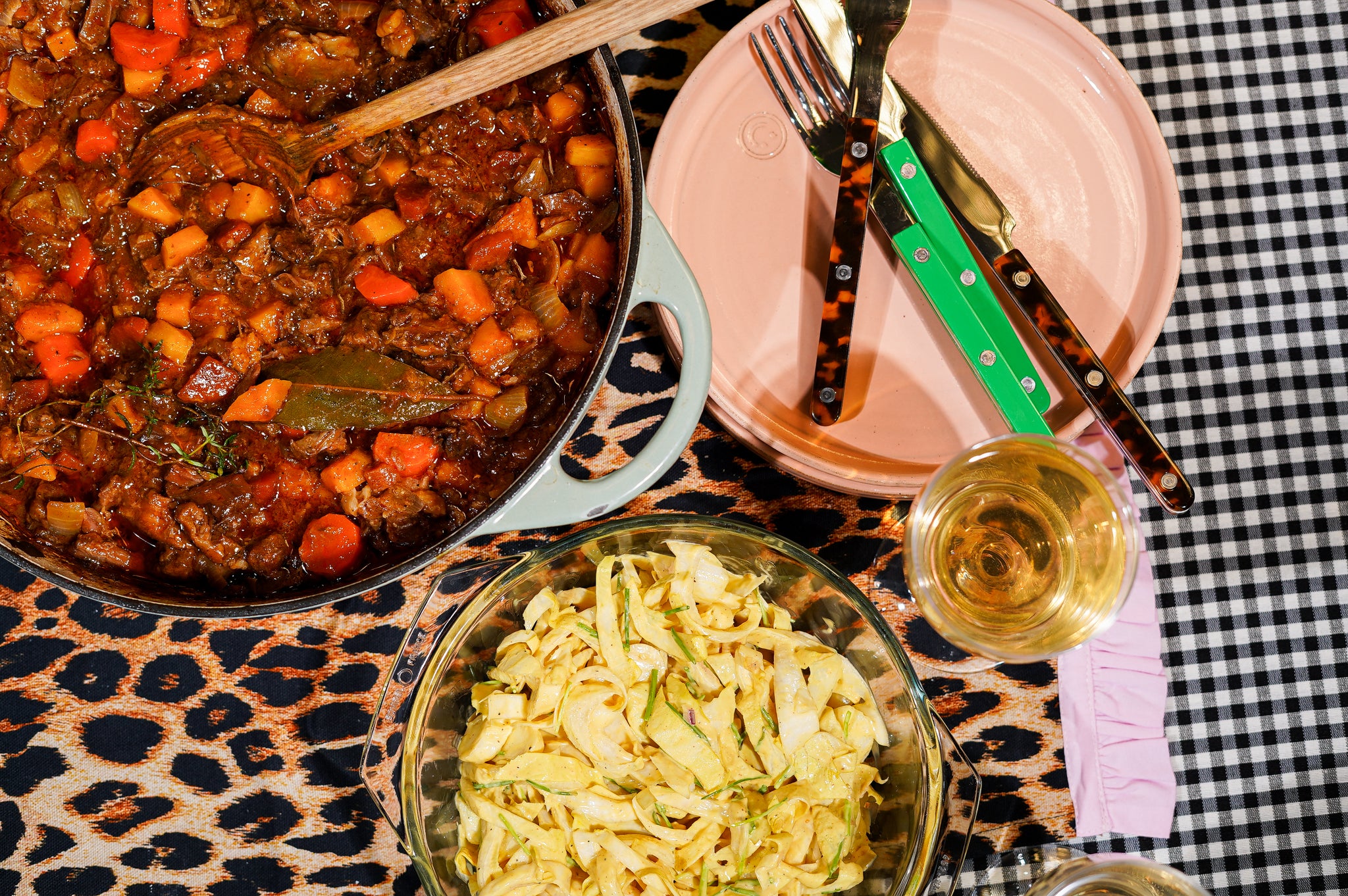 Pour servir : Servir le ragoût avec la salade d'endives fraîches et une préparation de pommes de terre au choix : purée, gratin, croquettes ou frites.