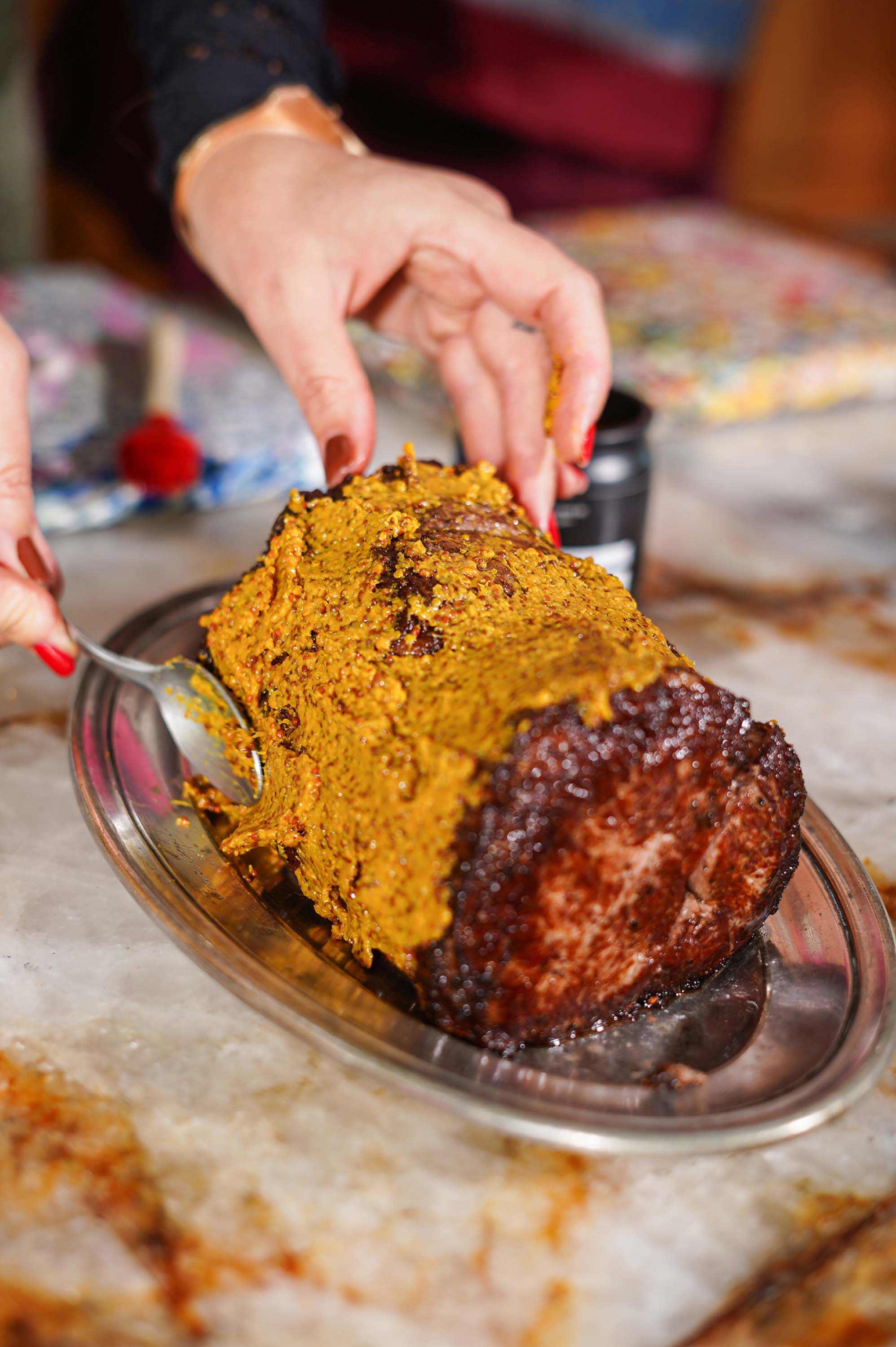 Conditionnement de la viande : Placez la viande sur le papier d'aluminium au début de la couche et enroulez-la fermement à l'aide du papier d'aluminium. Fermez hermétiquement et laissez reposer au réfrigérateur pendant au moins 30 minutes (plus longtemps est également possible, même toute la nuit).