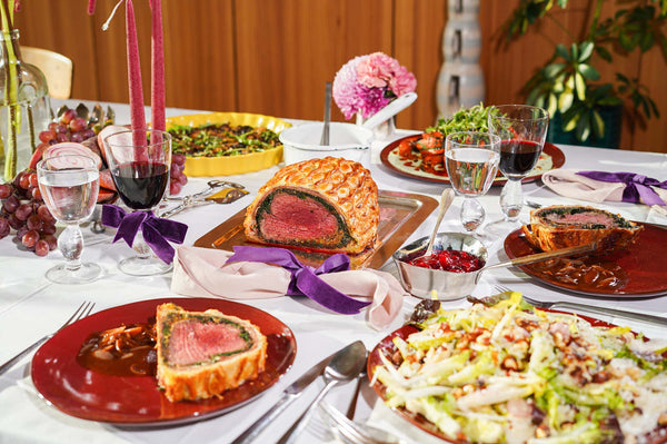Préparation de la viande : Assaisonnez généreusement le Chateaubriand de sel et de poivre. Faites chauffer une noix de beurre dans une poêle et saisissez la viande sur toutes les faces, côtés compris. Cela permet de conserver le jus lors de la coupe. Frottez la viande frite avec la moutarde. Laissez ensuite refroidir complètement.