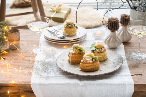 Une demi-heure avant de servir ; découpez les couvercles des feuilletés, réchauffez-les pendant cinq minutes dans un four préchauffé à 180°.