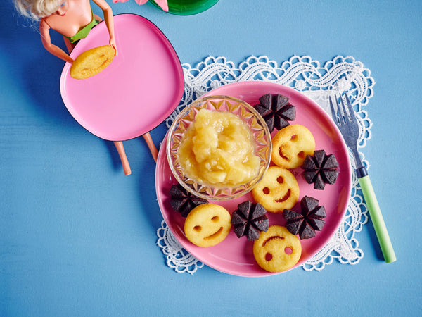 Dressez les étoiles de saucisse avec les visages souriants avec beaucoup de compote de pommes. 😊