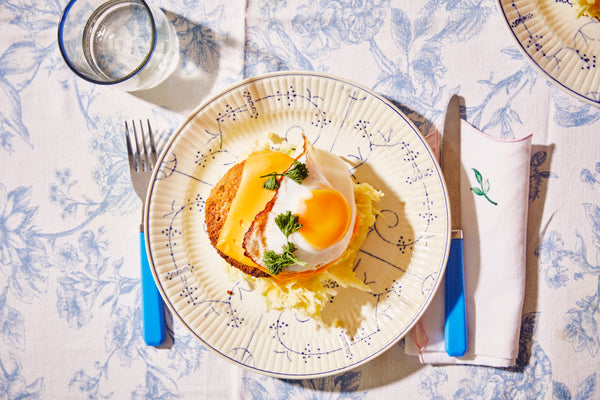 Burger végétarienne sur purée avec œuf au plat