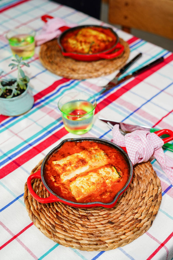 Cannellonis de courgettes au poulet haché, ricotta et sauce tomate