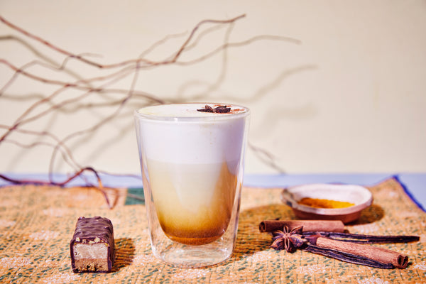 Répartissez le chai dans les verres et mélangez à nouveau. Répartissez le lait par-dessus et terminez avec de la poudre de cannelle et une étoile de badiane.