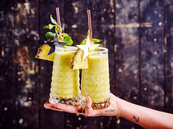 Trempez les verres dans l'ananas, puis dans le sel.
