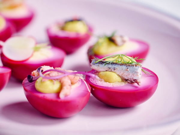 Oeufs marinés avec des garnitures festives