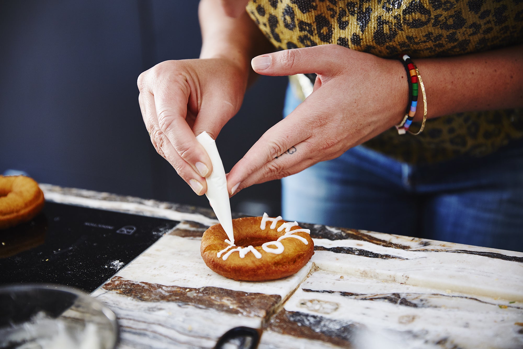 Et maintenant, la meilleure partie : décorer les donuts ensemble ! Amusez-vous bien.
