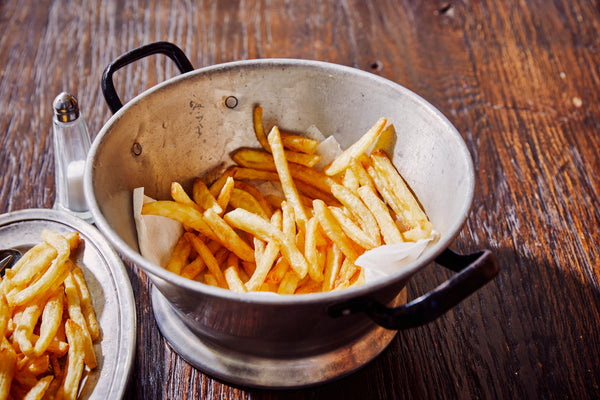 Augmentez maintenant votre température à 180°. Vous allez maintenant faire frémir les frites jusqu'à ce qu'elles soient dorées et croustillantes. Égouttez-les sur un plat avec du papier absorbant et servez immédiatement avec un peu de sel par-dessus.