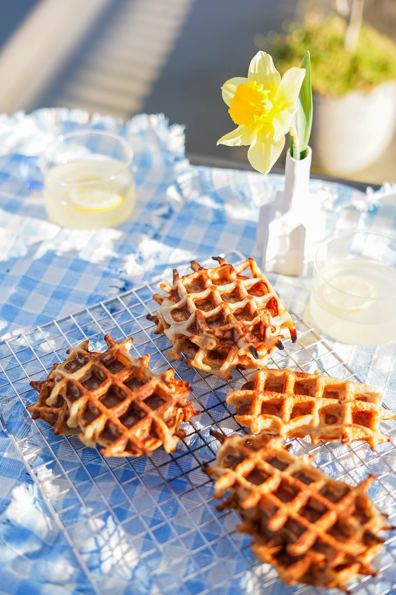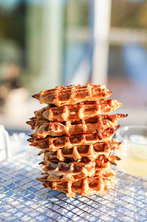Répétez l'opération jusqu'à épuisement de la pâte et laissez les gaufres refroidir quelques instants sur une grille. Elles resteront ainsi meilleures.