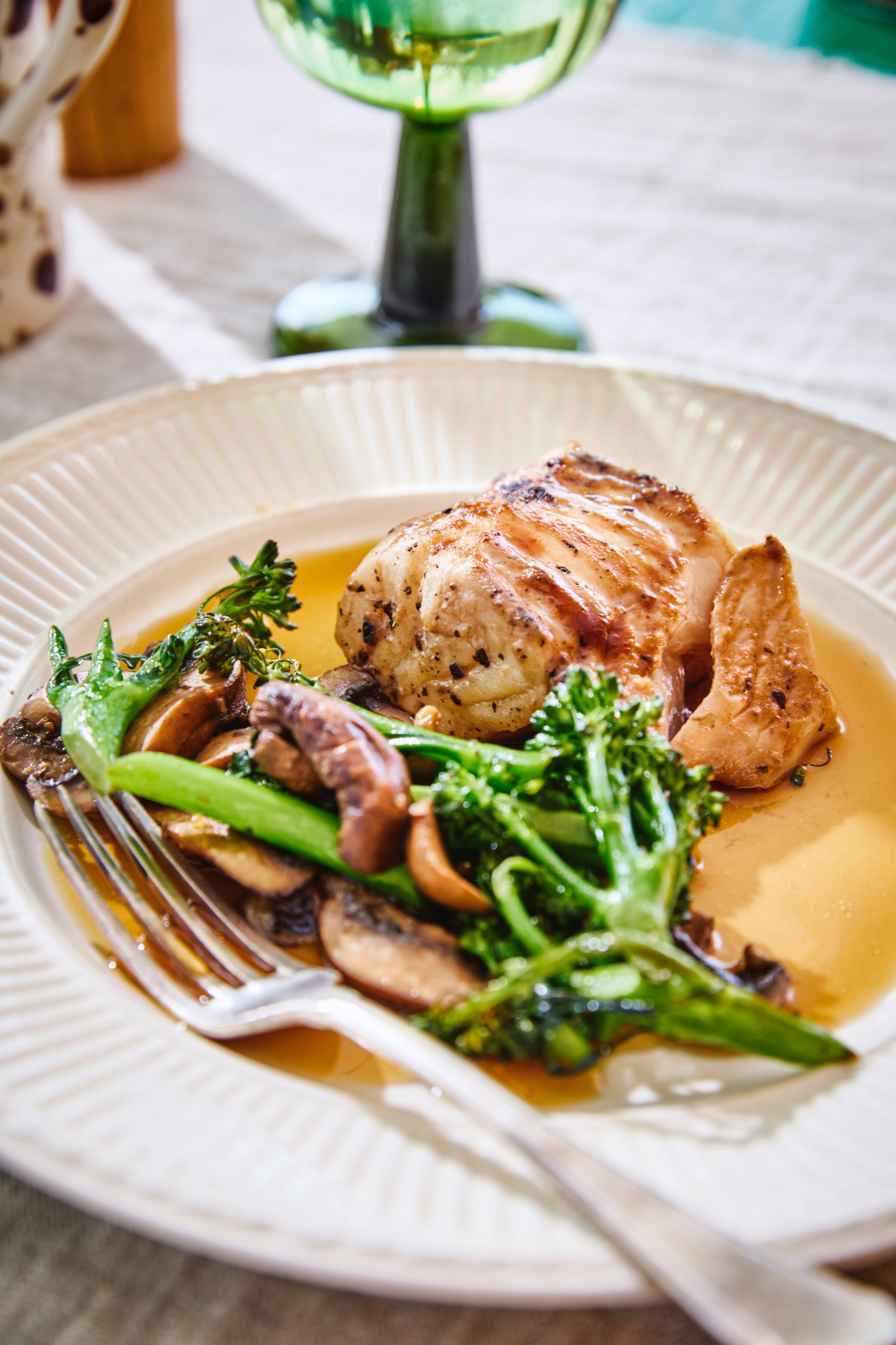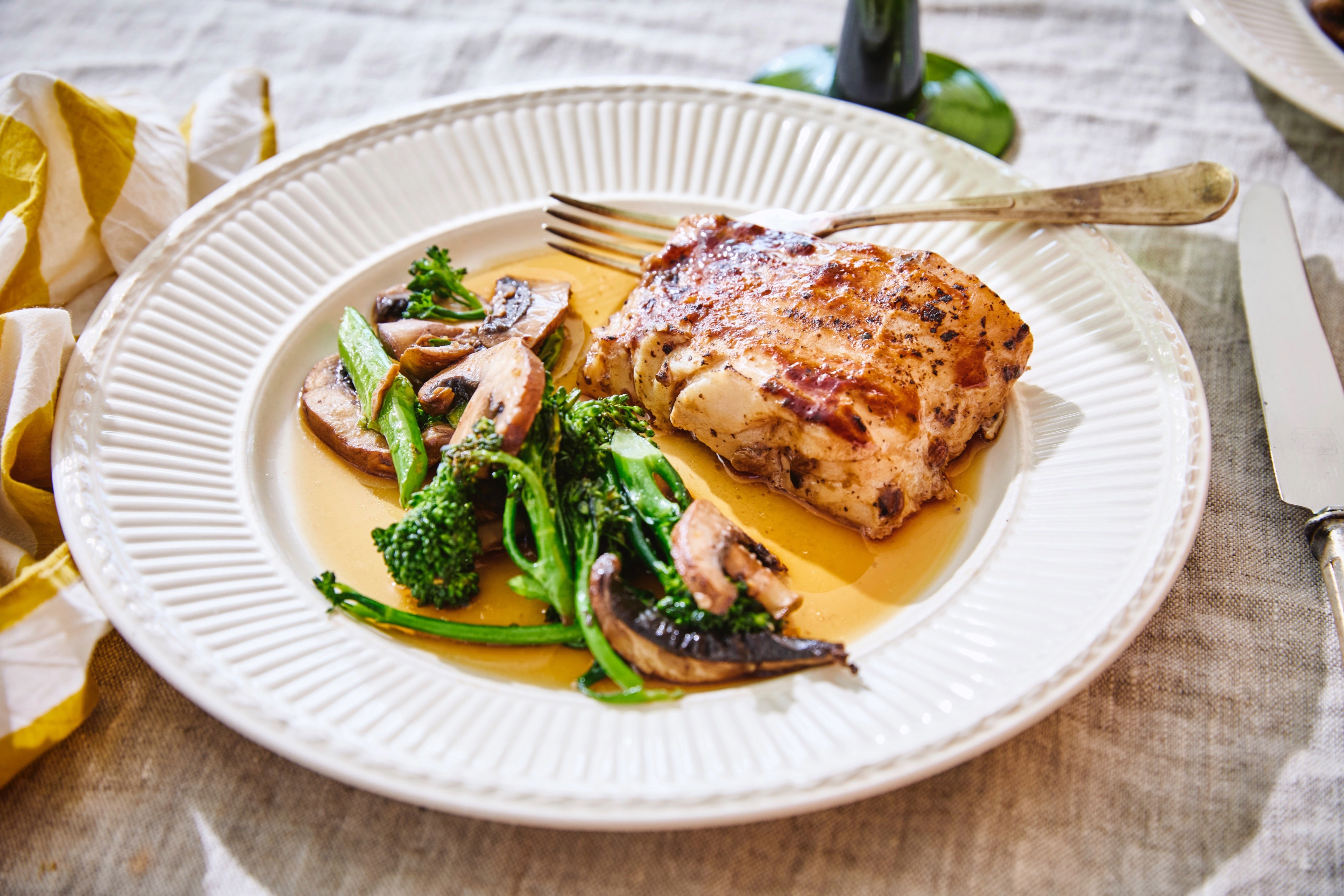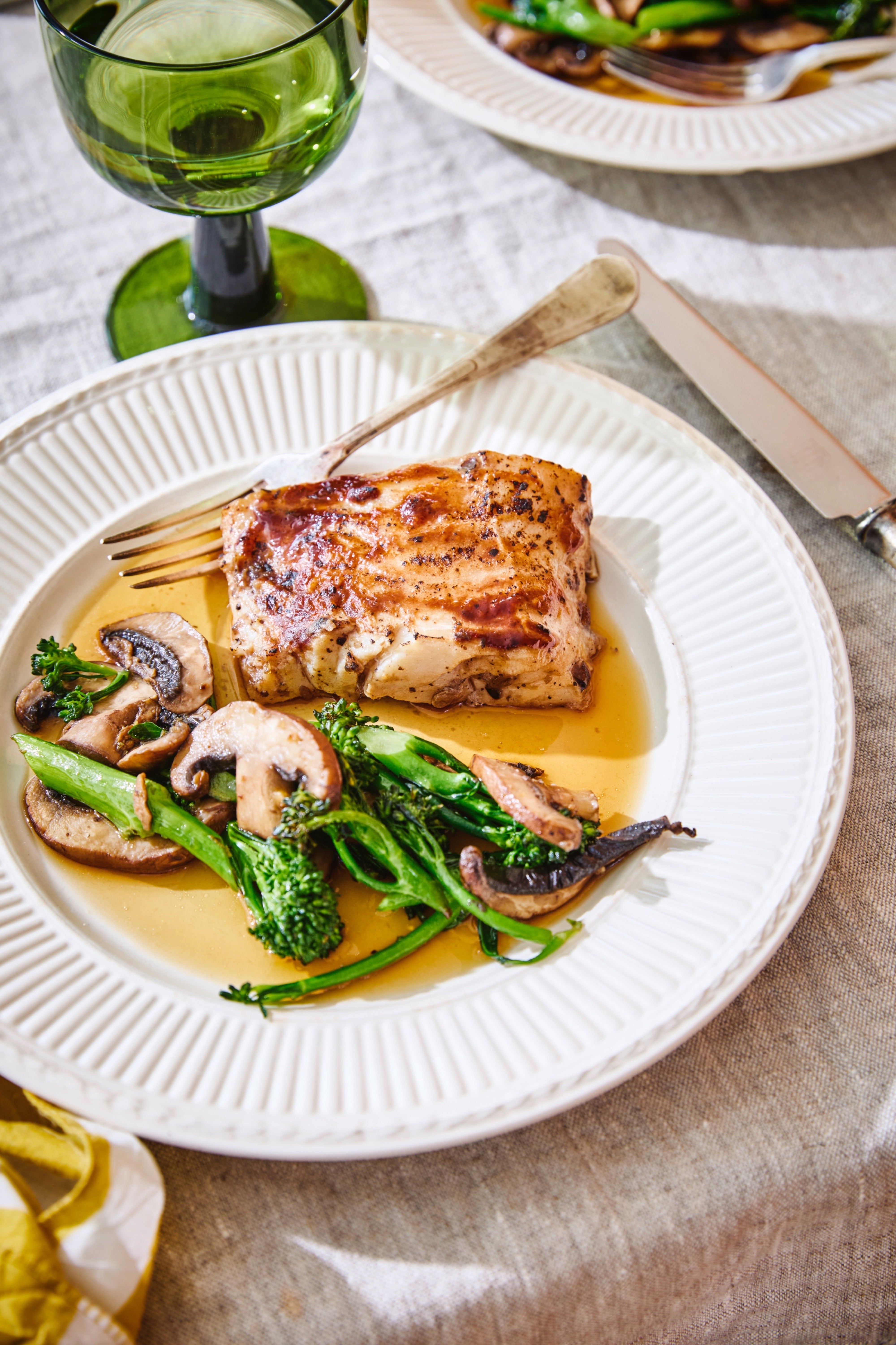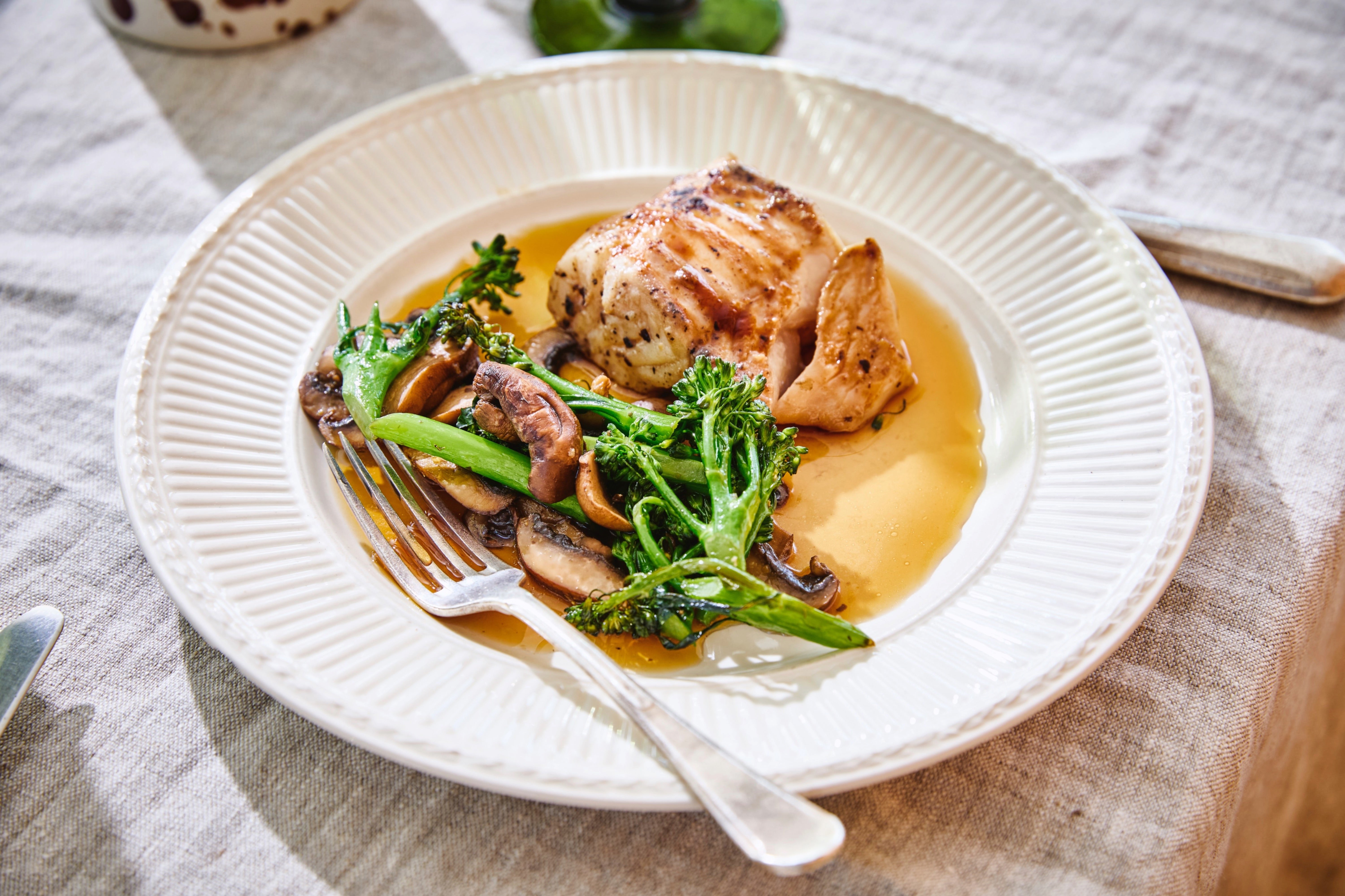 Cabillaud miso style Nobu avec bimi rôti, shiitake et bouillon dashi