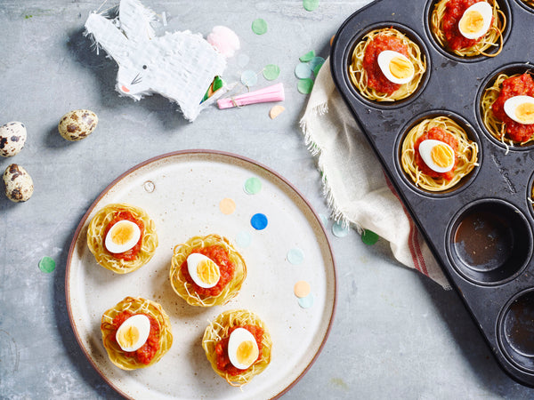 Pâtes complètes en nids avec sauce aux 7 légumes