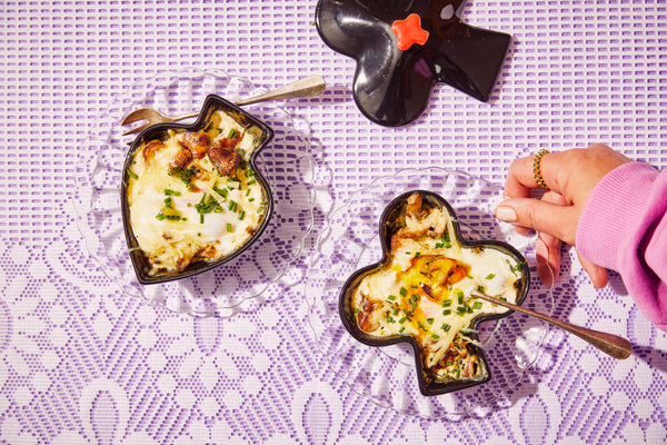 Répartissez dans des ramequins allant au four, ajoutez déjà un peu de fromage, placez un œuf cru dans chaque ramequin et ajoutez le reste du fromage. Enfournez pendant 8 à 10 minutes dans un four préchauffé à 200°.