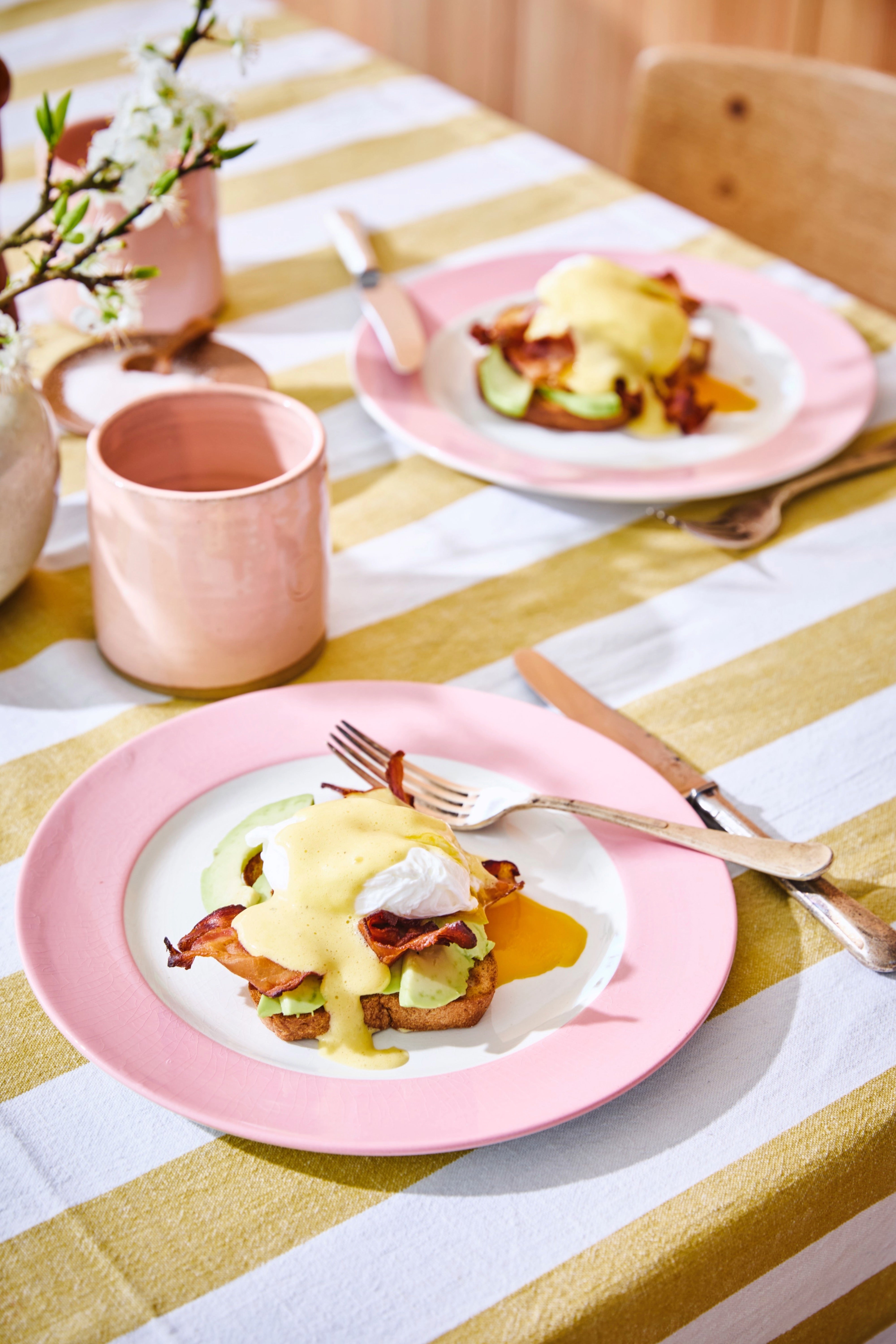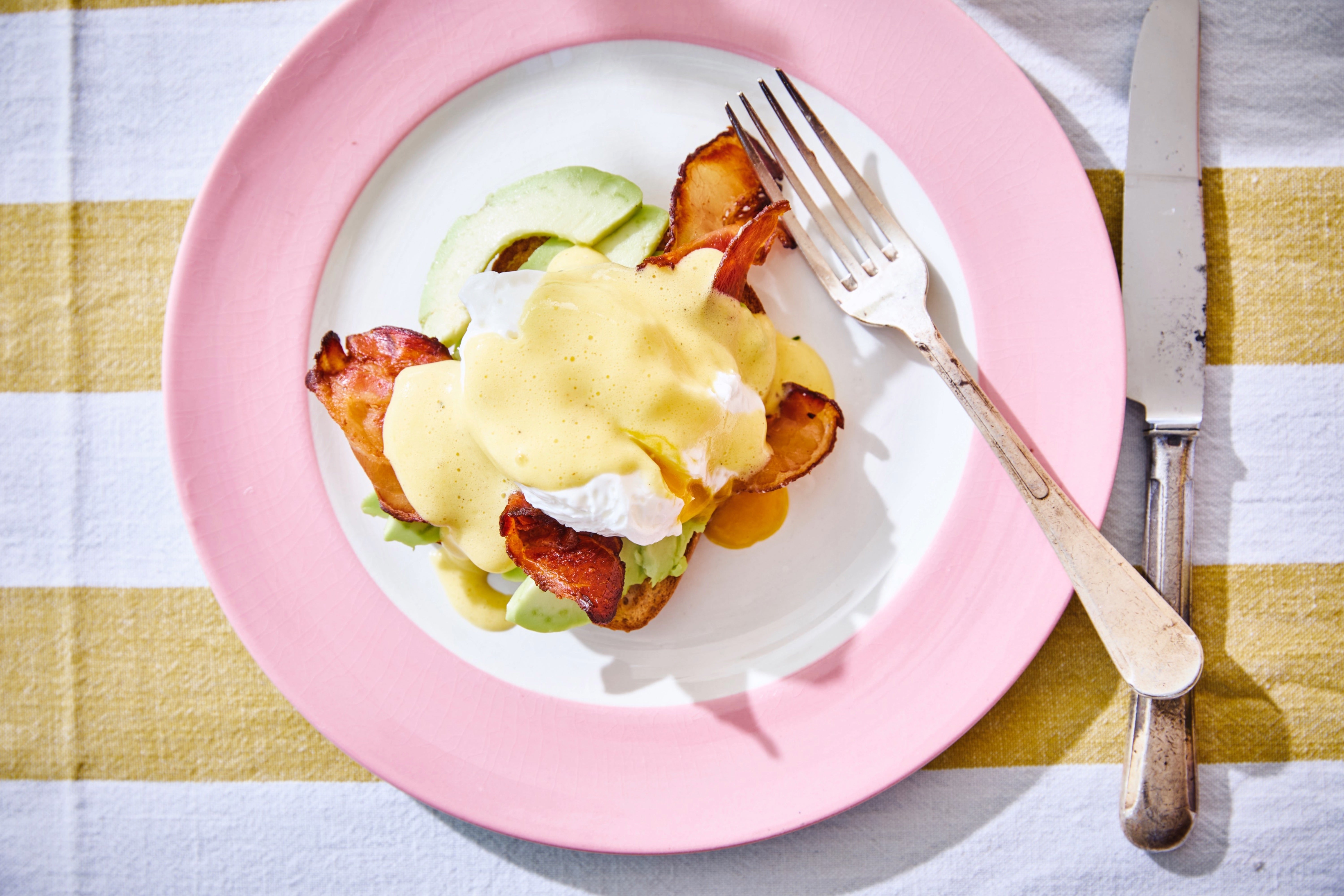 Oeufs bénédicte avec bacon croustillant, avocat et sauce hollandaise