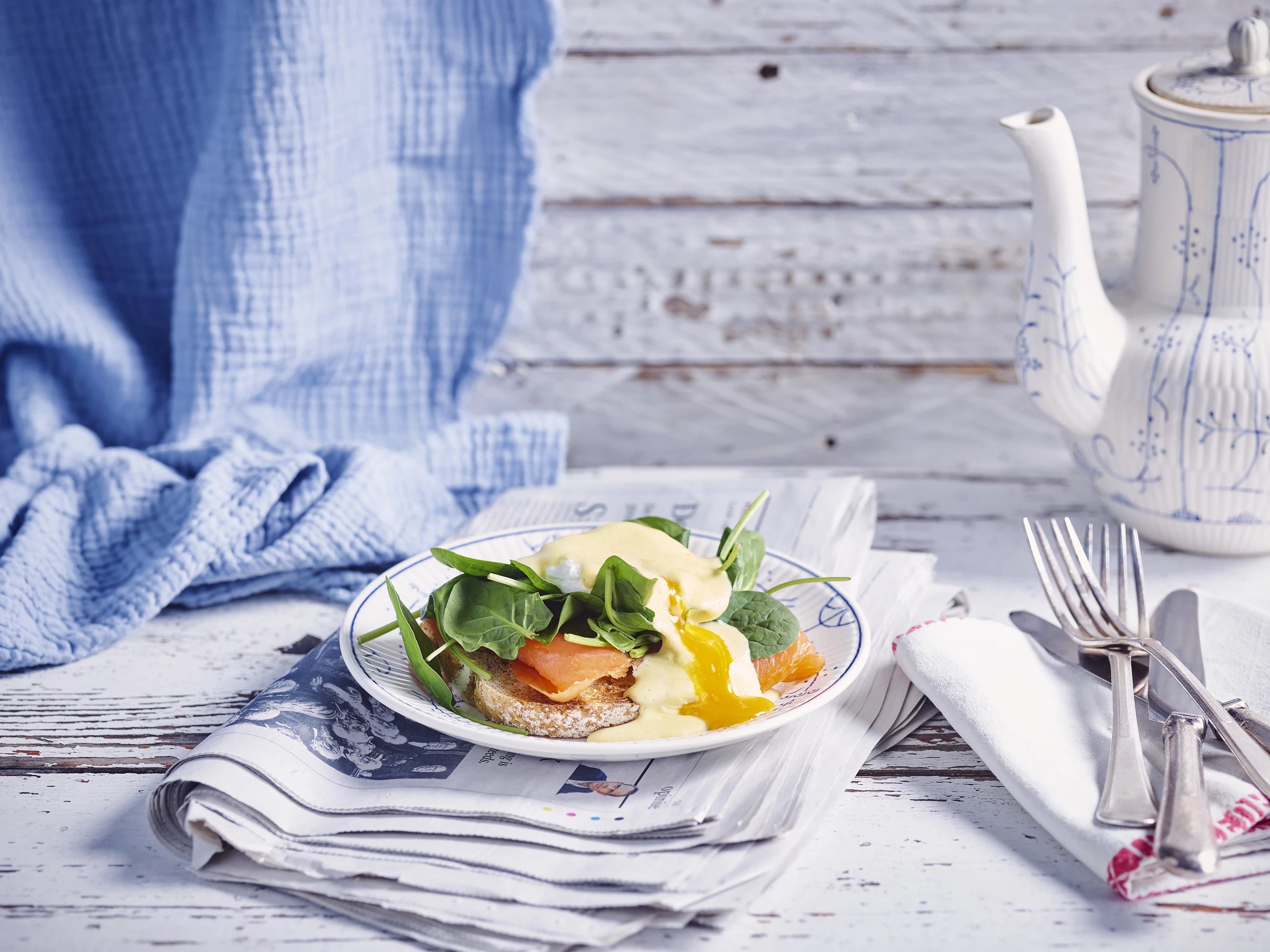 Déposez-les sur les épinards et terminez avec une généreuse cuillère de sauce hollandaise sur le dessus.