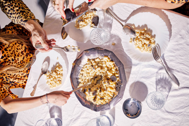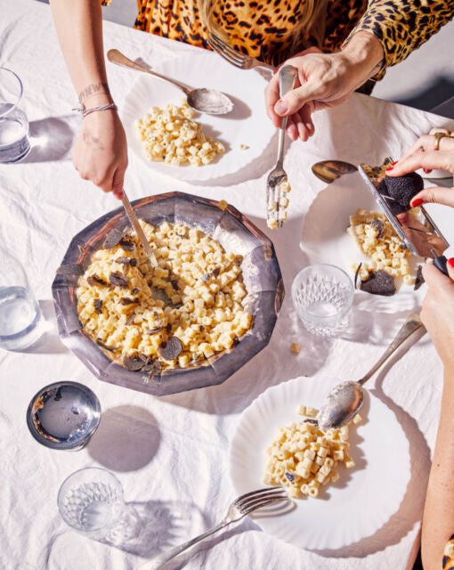 Servez dans un plat et râpez la truffe par-dessus. Vous pouvez même continuer à ajouter de l'eau de cuisson à table si cela devient trop collant.
