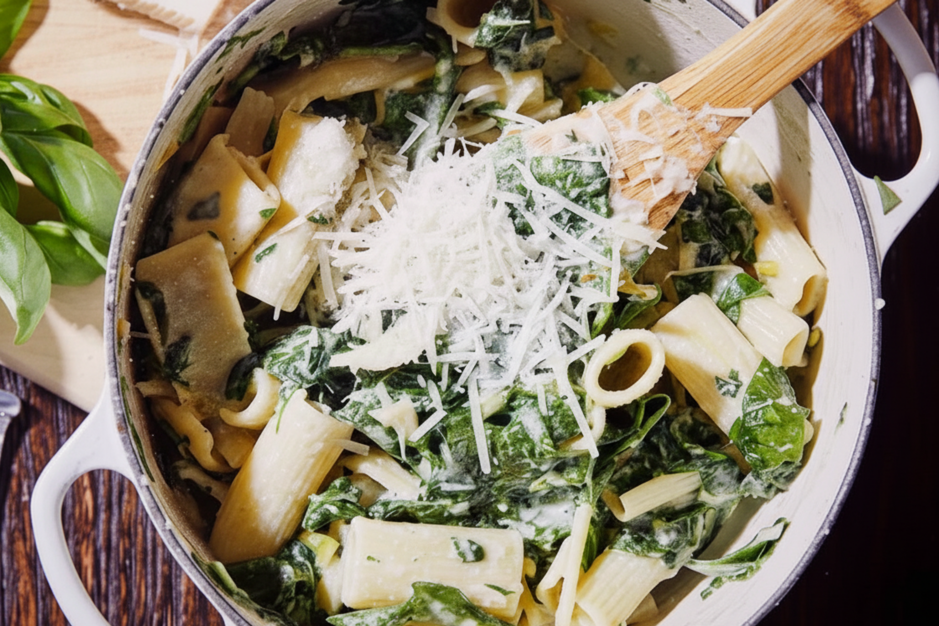 Pâtes one pot avec épinards dans une sauce crémeuse