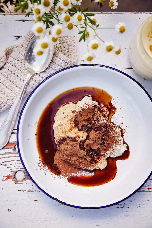 Petit-déjeuner tiramisu d'avoine et un verre de Cava Ars Collecta de Codorniu