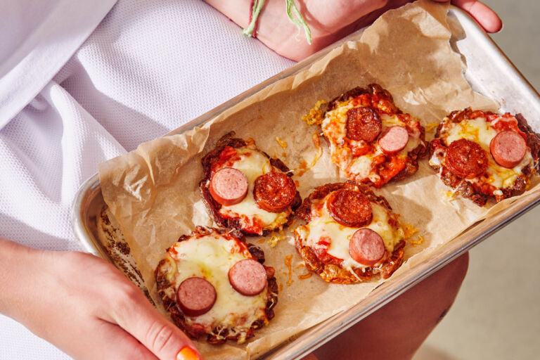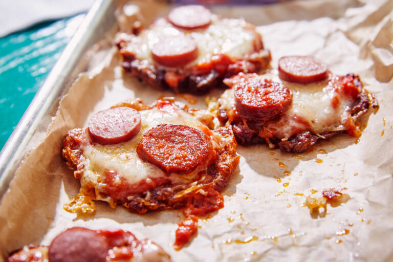 Répartissez la sauce tomate, le fromage et les tranches de saucisse sur les bases de pommes de terre. Faites cuire à nouveau pendant 12-15 minutes, ou jusqu'à ce que le fromage soit bien fondu.