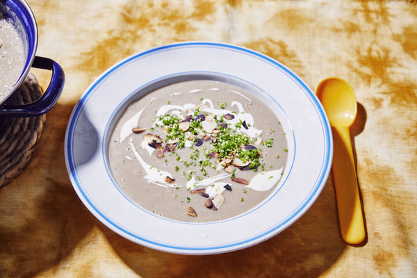 Soupe de châtaigne avec ciboulette et amandes grillées