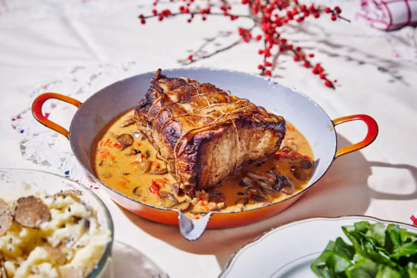 Sortez la viande du four et laissez le rôti reposer pendant 10 minutes enveloppé dans du papier aluminium, puis coupez-le en tranches. Égouttez le gras de la poêle et ajoutez le jus du rôti à la sauce, goûtez et assaisonnez si nécessaire.