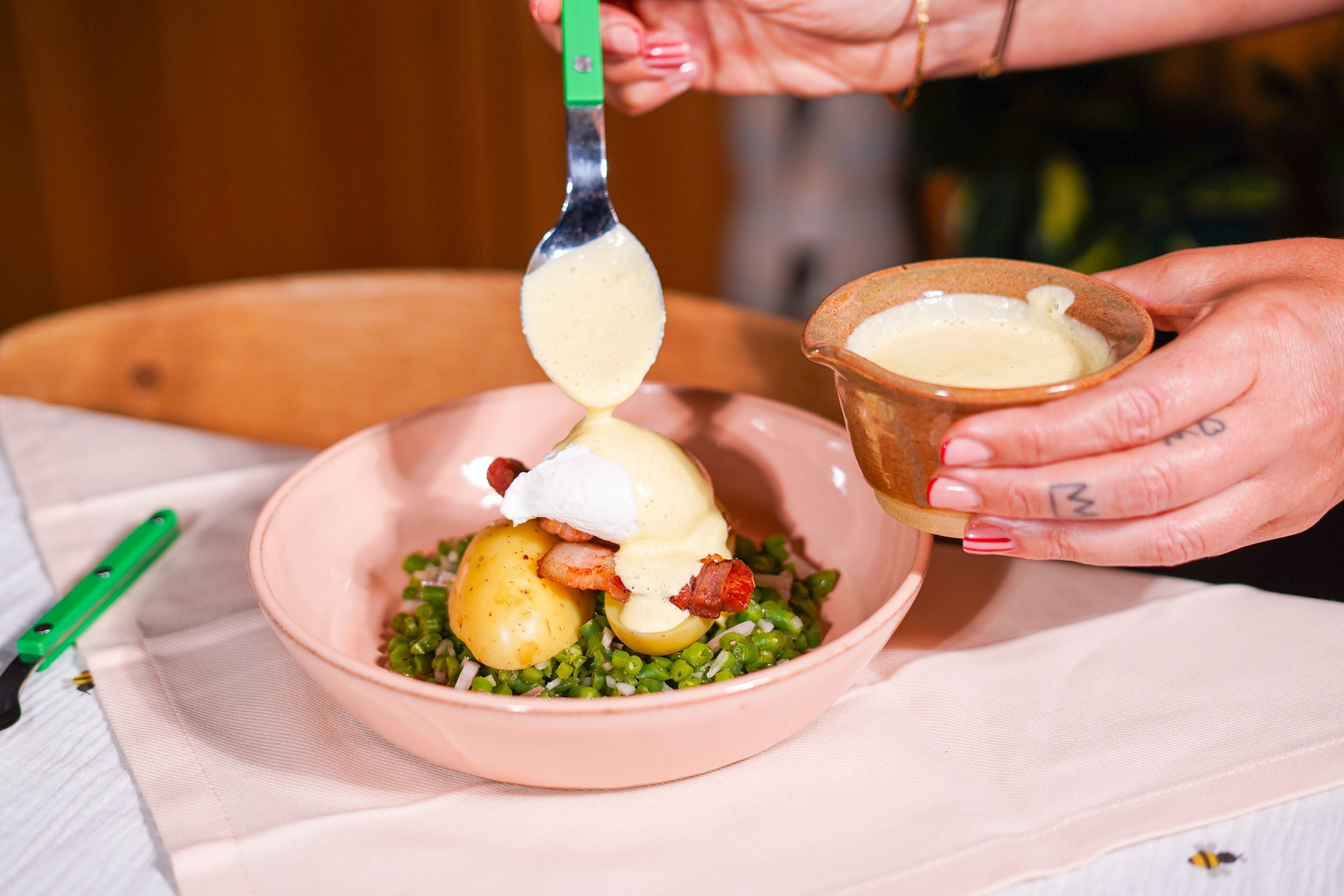 Terminez avec une cuillère à soupe de crème de cornichons et, si vous le souhaitez, un brin de persil.