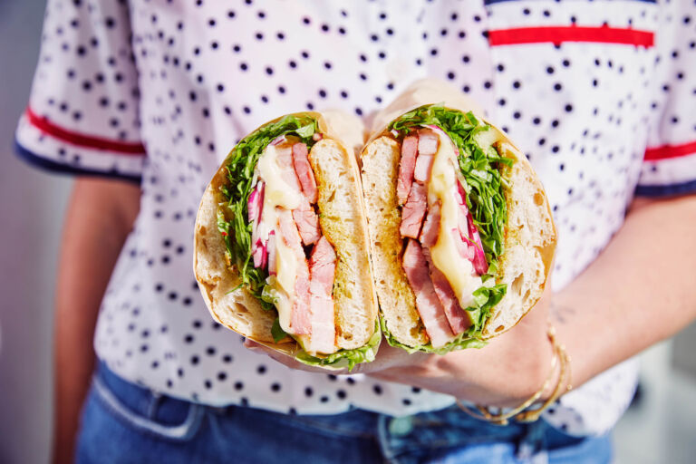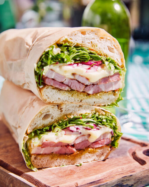 Enveloppez le sandwich dans du papier sulfurisé et mangez-le immédiatement ou emportez-le pour un pique-nique.