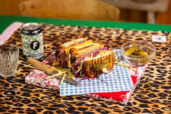 Sandwich au pastrami avec chou rouge mariné, cheddar et mayonnaise kimchi