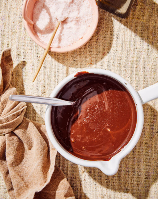 Sauce au chocolat maison avec fleur de sel et huile d'olive