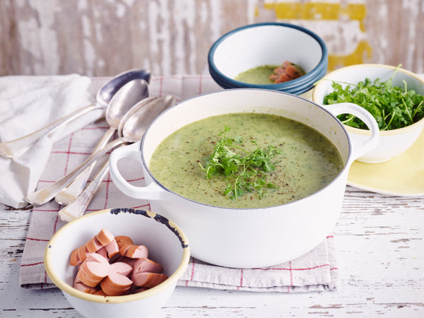 Servez la soupe avec les saucisses.