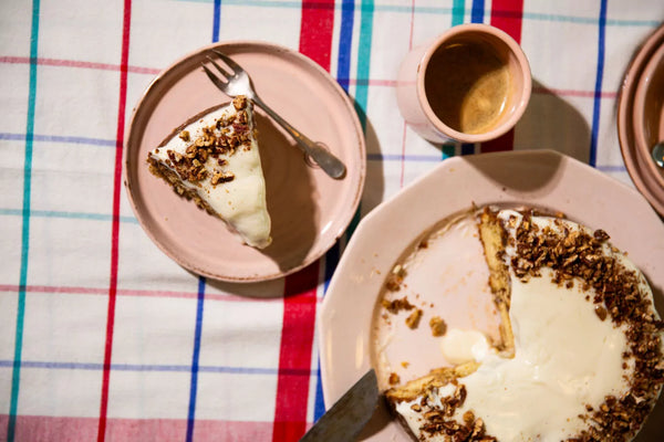 Arrosez de glaçage au cheesecake et saupoudrez de noix de pécan grossièrement hachées.