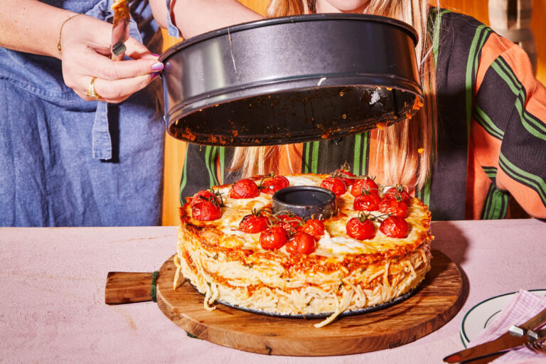 Servez la tarte de spaghetti immédiatement et régalez-vous !