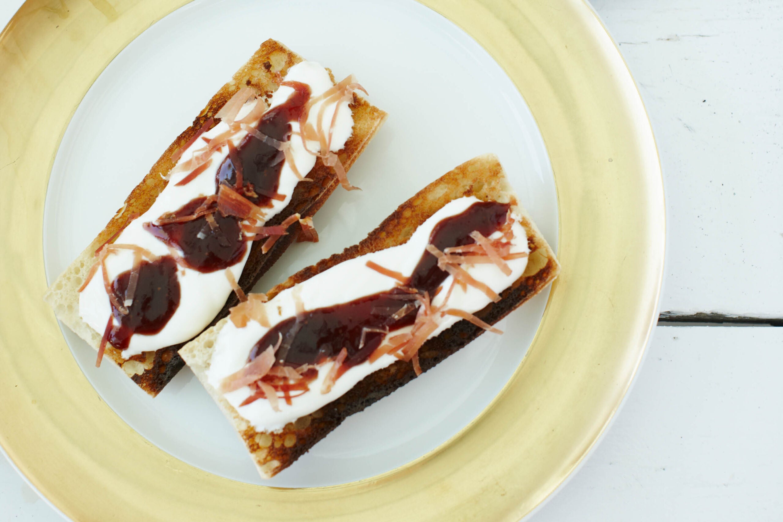 Toast avec Fromage Frais, Confiture de Fraises et Jambon Serrano