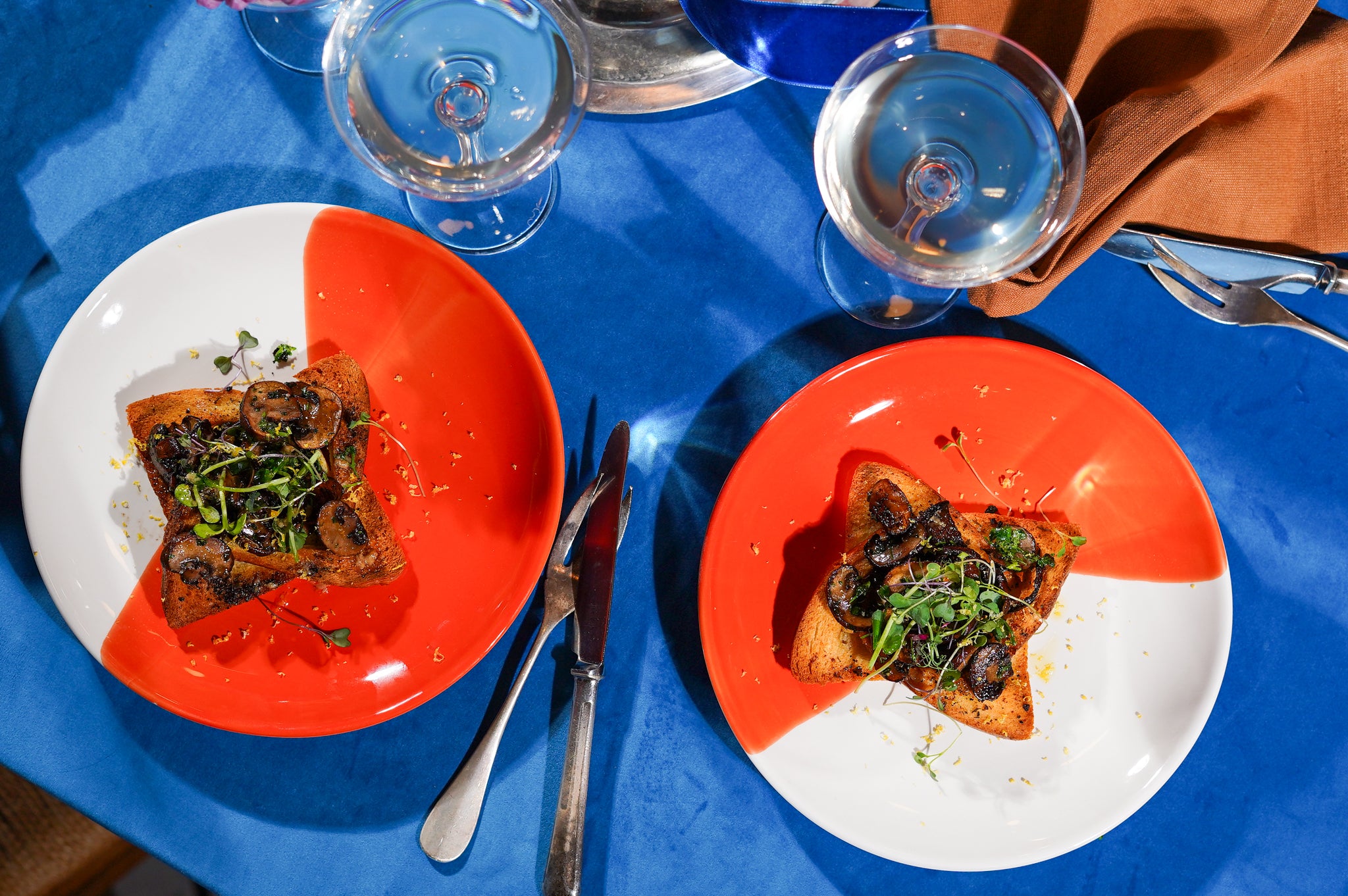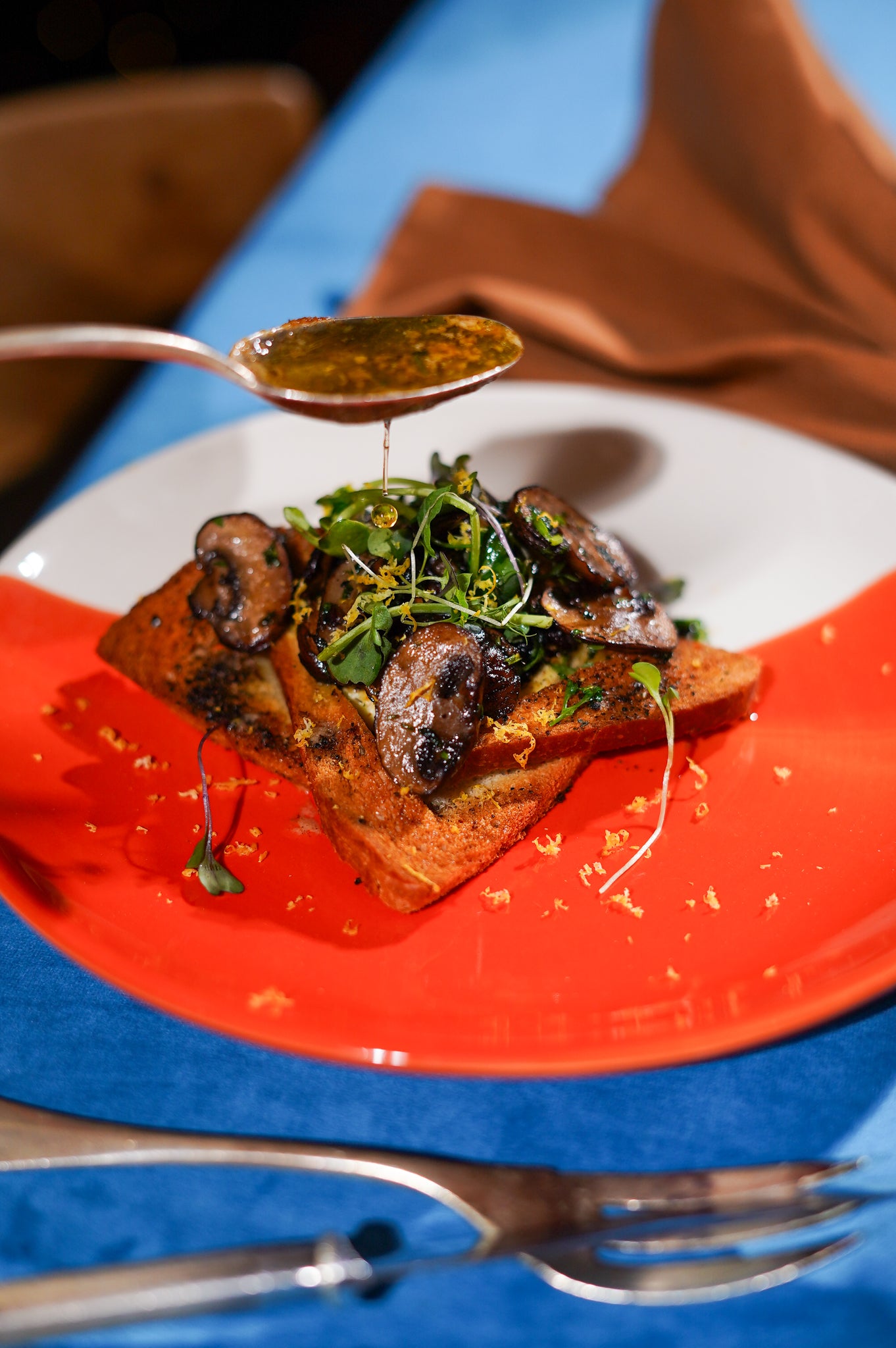 Finition et service : Répartissez les champignons poêlés sur les toasts chauds au chèvre.