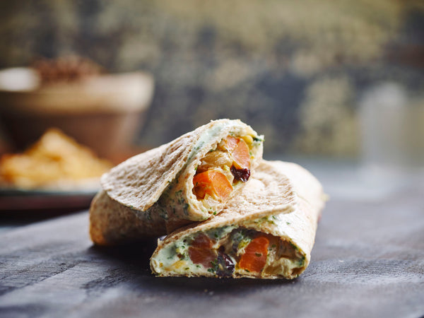 Fête de la tortilla : tortilla complète, viande végétale de champignons et sauce yaourt aux herbes