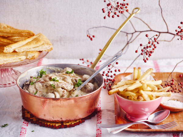 Servez avec le vol-au-vent accompagné de quelques frites croustillantes et de pâte feuilletée.