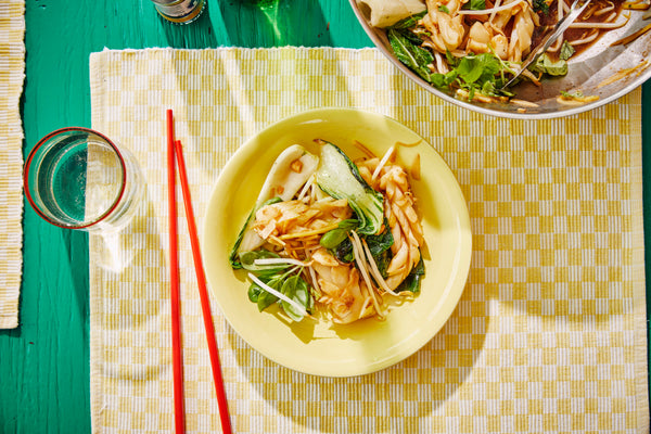 Wok thaïlandais avec calmar, gingembre et pak choï