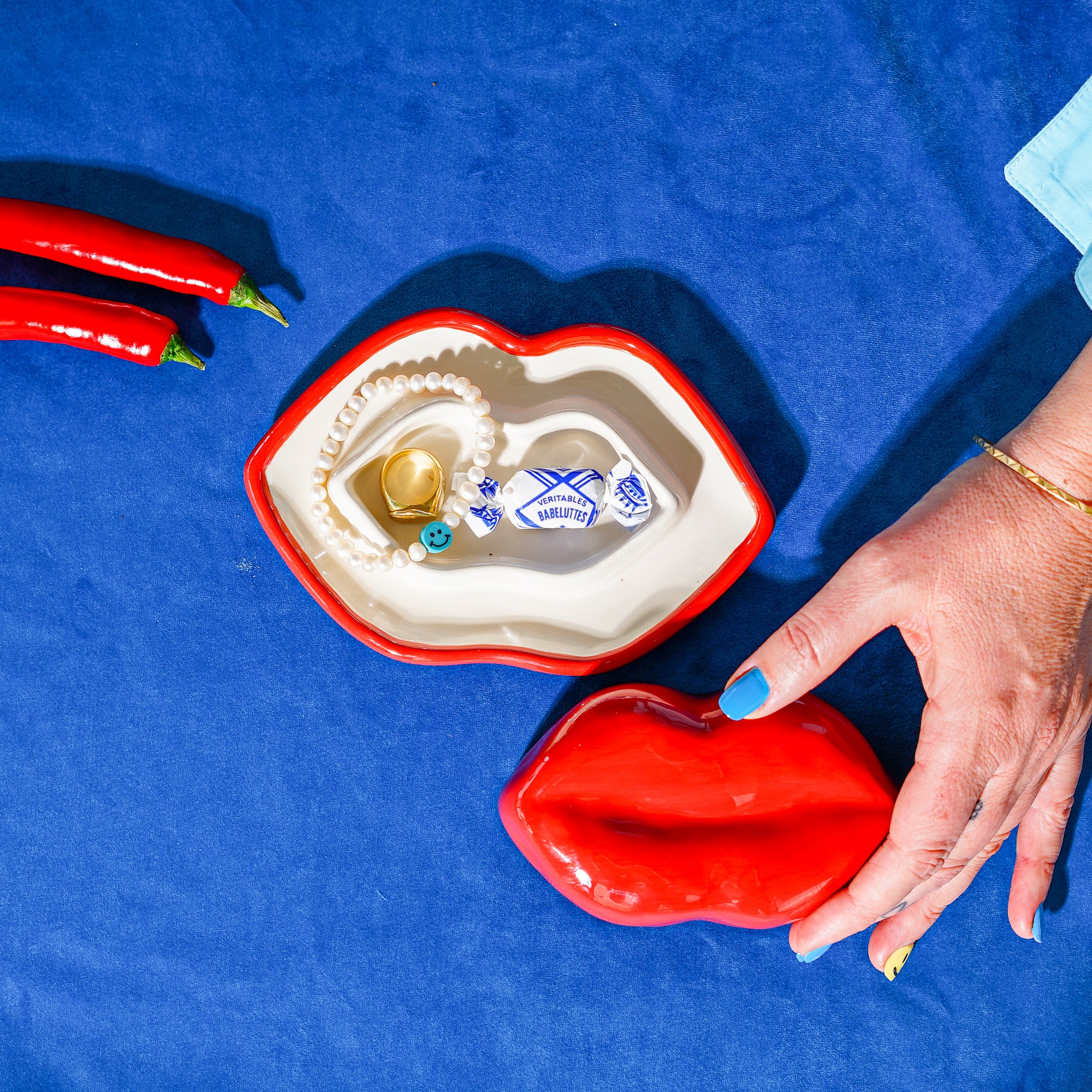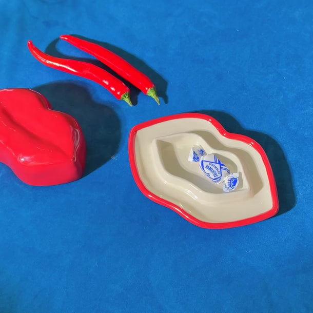 Plat avec couvercle lèvres rouges