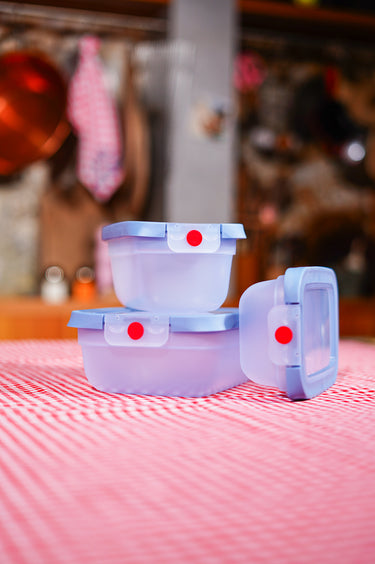 Grâce au couvercle à clic astucieux, tu peux tout fermer hermétiquement en un seul mouvement. Tu peux les ranger sans effort dans le réfrigérateur ou le congélateur, et après utilisation, elles vont directement au lave-vaisselle. Empilables, emboîtables et conçues pour disparaître sans effort dans ton placard… jusqu'à ce que tu en aies à nouveau besoin. Et là, elles sont prêtes à rendre ta routine de cuisine juste un peu plus facile.