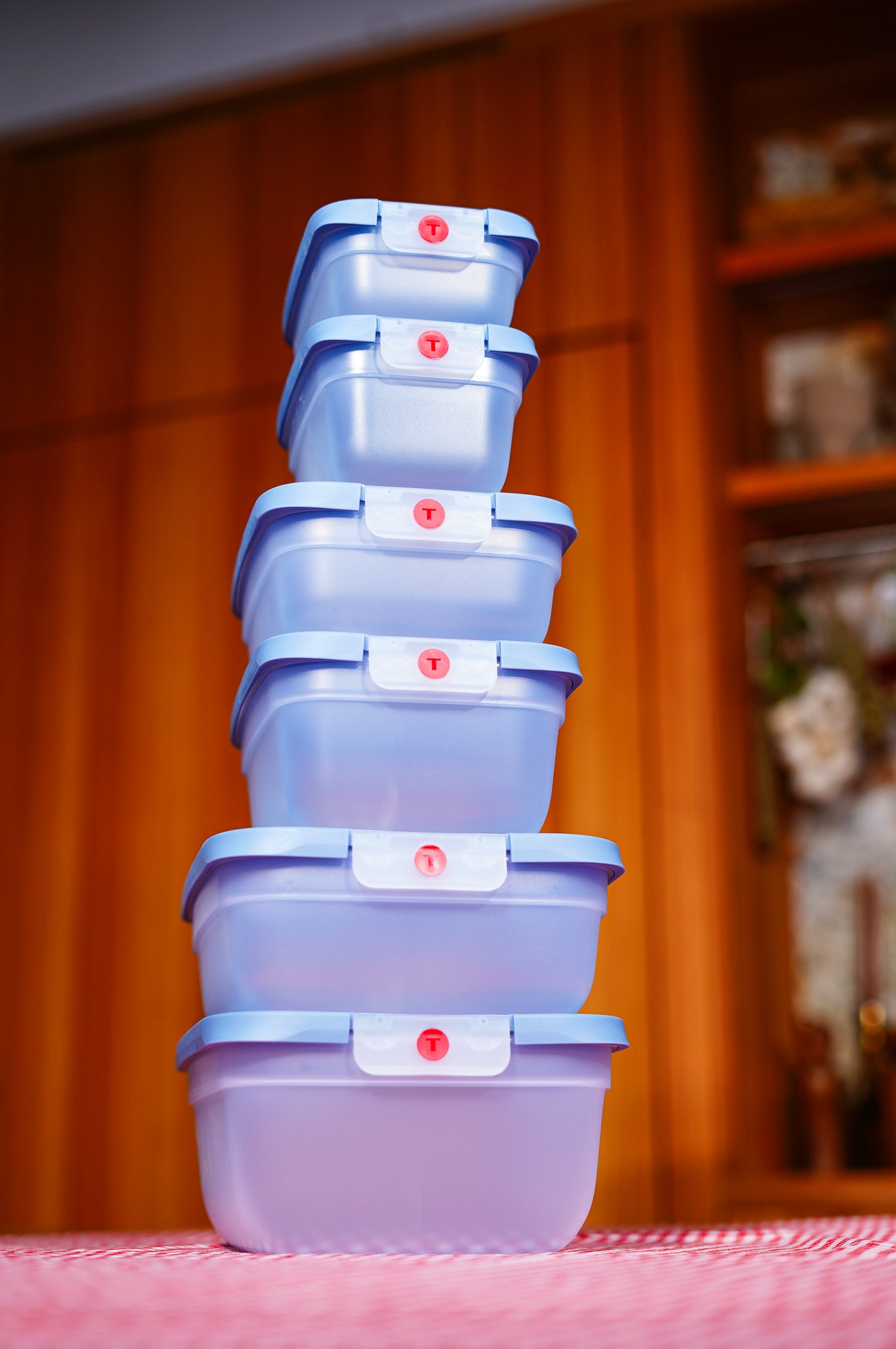 Grâce au couvercle à clic astucieux, vous fermez tout hermétiquement en un seul mouvement. Vous les rangez sans effort dans le réfrigérateur ou le congélateur, et après utilisation, elles passent simplement au lave-vaisselle. Empilables, emboîtables et conçues pour disparaître sans effort dans votre placard… jusqu'à ce que vous en ayez besoin. Et alors, elles sont là, prêtes à rendre votre routine de cuisine juste un peu plus facile.
