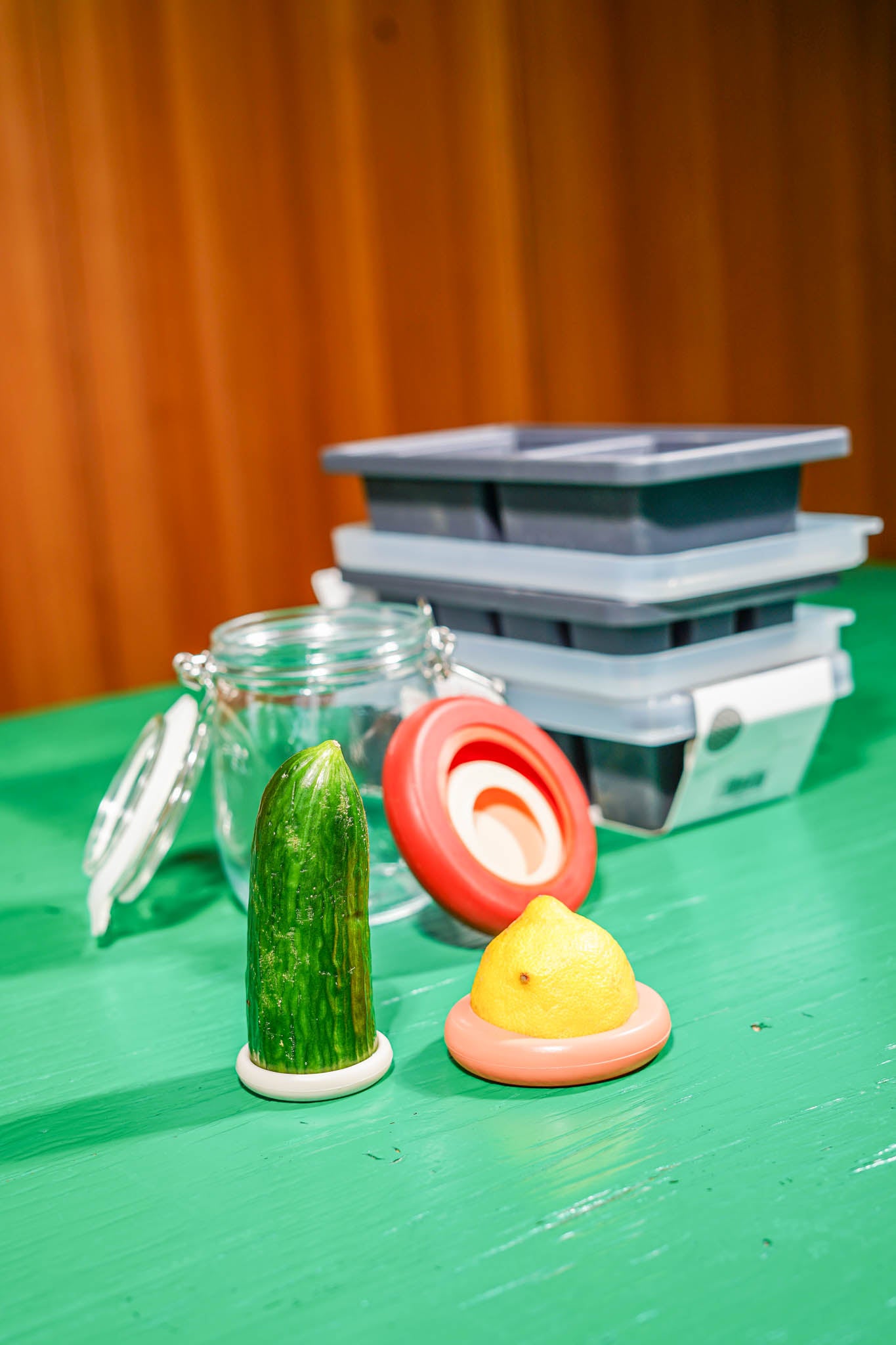 – Un ensemble de 5 cubes alimentaires en terre cuite, pratique pour tout empiler joliment et pour garder votre congélateur bien organisé