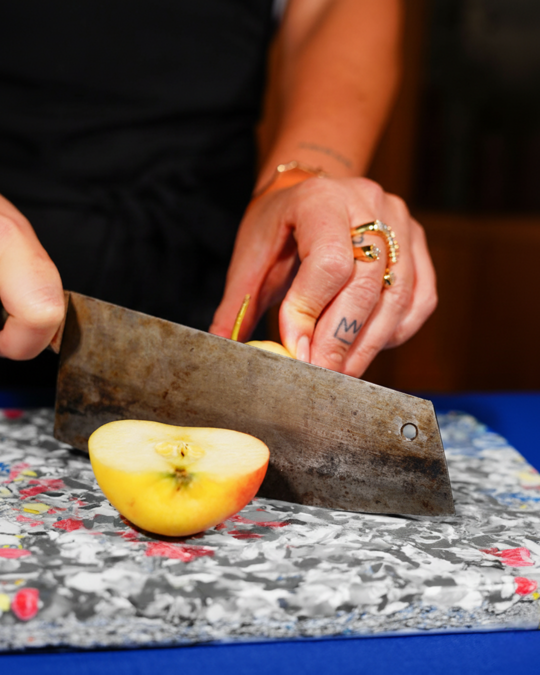 Authentique et puissant. Ce couteau tient bien en main et coupe sans effort les légumes, la viande et le poisson. Chaque pièce est unique. -