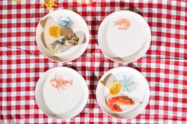 Pour moi, un bon plat ne doit pas seulement être savoureux, il faut aussi que l'œil soit gâté. J'ai choisi ces assiettes peintes à la main parce qu'elles donnent immédiatement un plus à chaque plat. Un beau plateau de crevettes, de homard ou de poulpe gagne instantanément en ambiance et en caractère si vous le servez dessus. Ce sont vraiment des assiettes qui rendent la préparation de la table encore plus agréable.