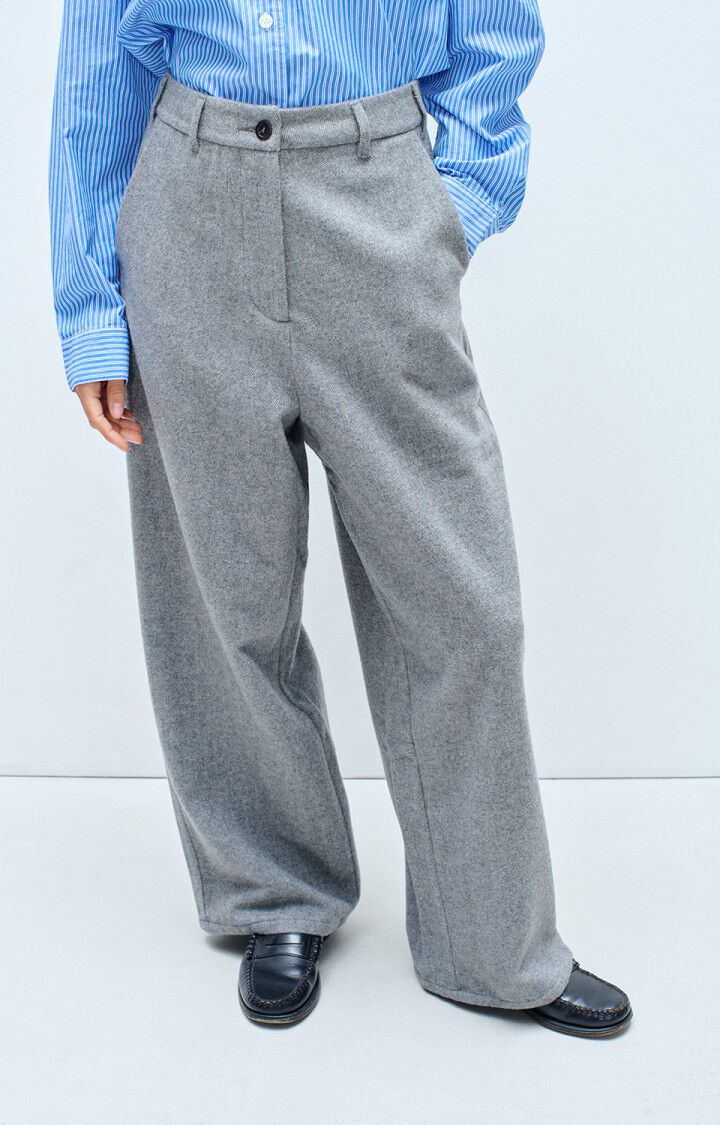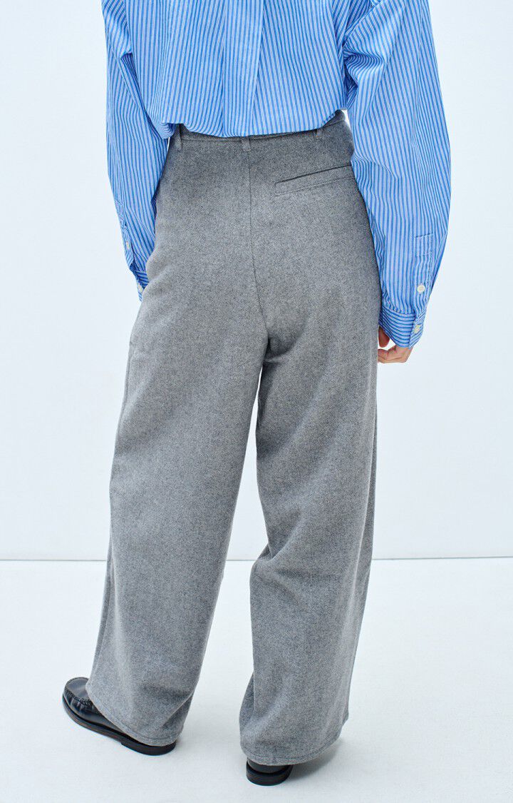 Le pantalon pour femme Imibay a une coupe large avec une taille basse et allie confort et élégance. Ce pantalon de qualité supérieure est fabriqué en laine italienne à motif chevrons et offre chaleur et authenticité. Le pantalon, à la fois sobre et raffiné, possède un style intemporel et sophistiqué et peut être porté aussi bien avec une chemise qu'avec un pull.